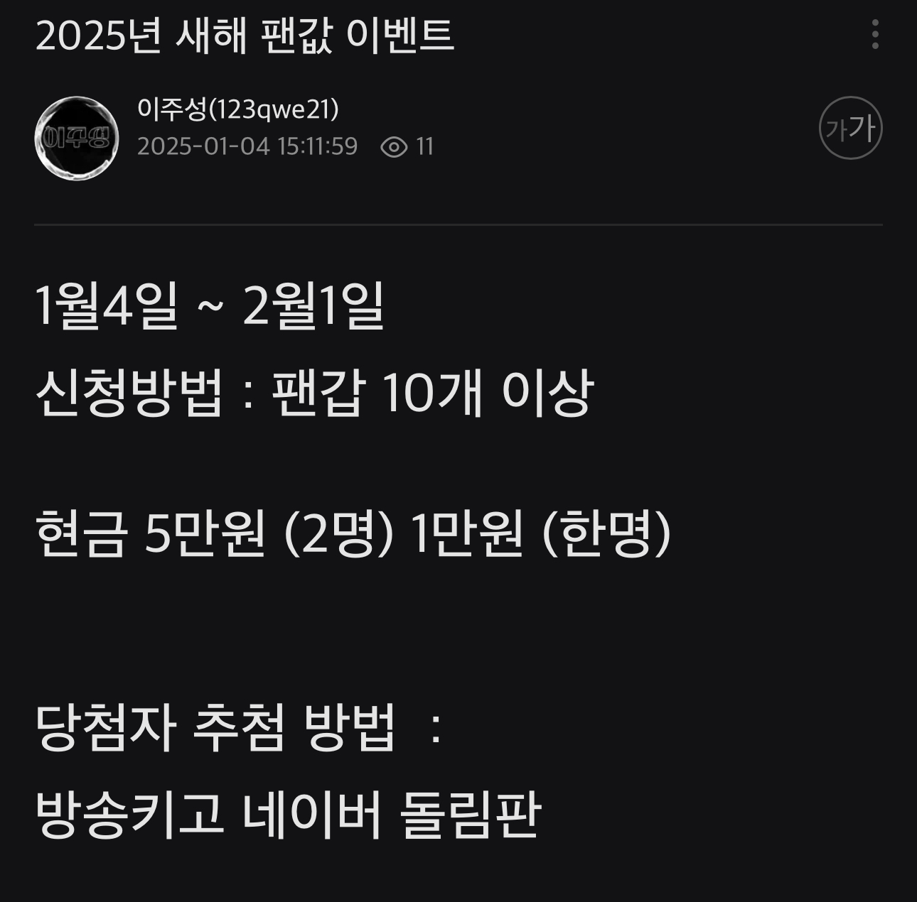 팬갑하고 추첨이나 해라