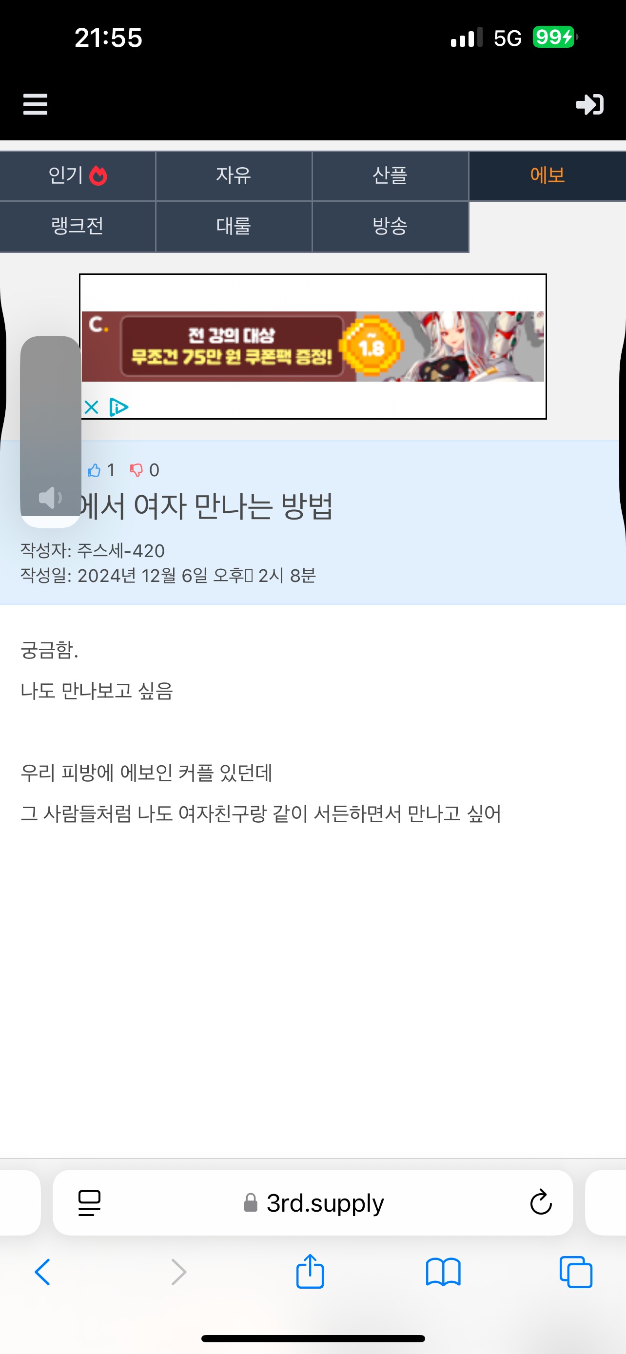 여자친구있음 3년 조금 넘게 만나고 있고 지금도 잘만나는중