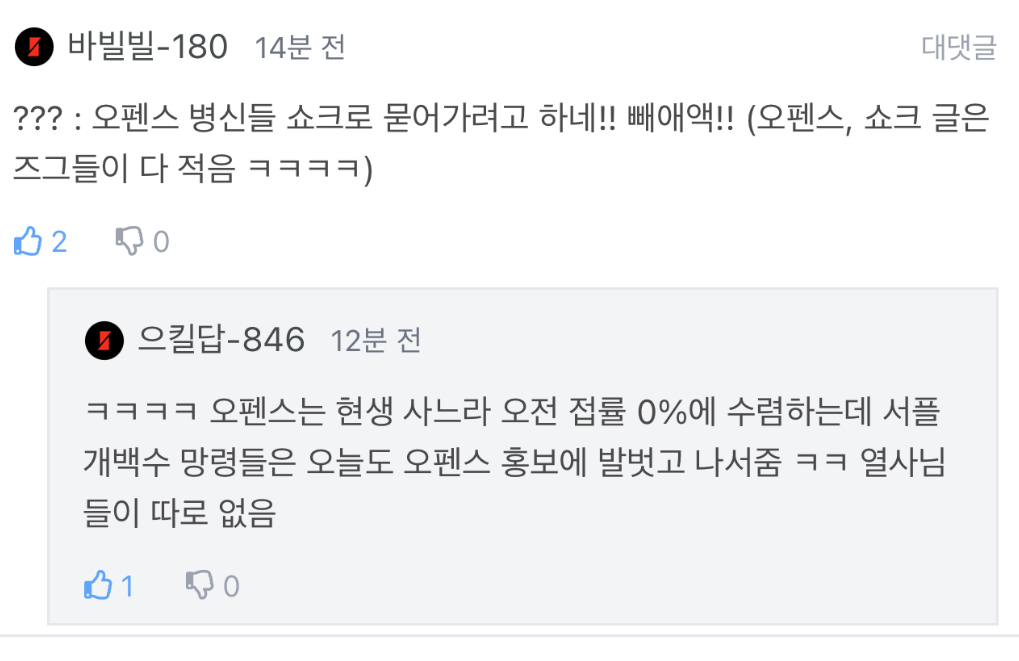 오펜스니까 니네접률을 알겠지 븅신들아..