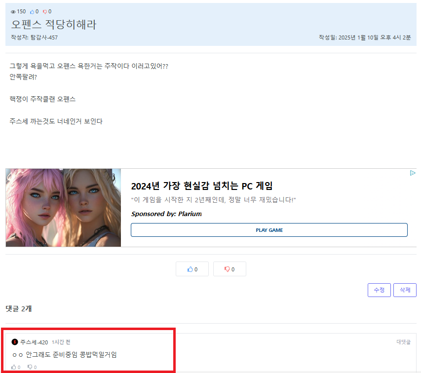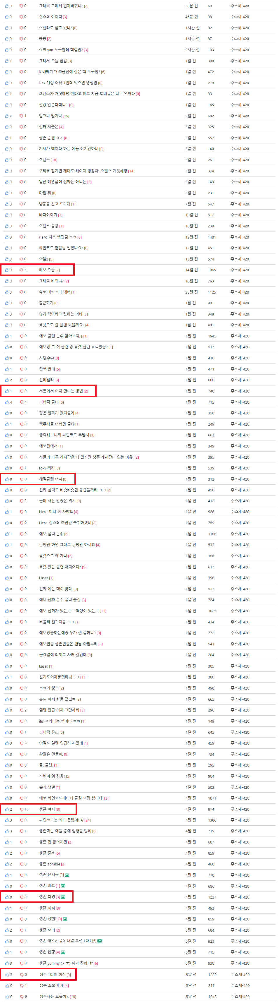 대부분이 남 욕하기 바쁜 글들이네? ㅋㅋㅋ 그리고 그 와중에 깨알같은 여자 관련된 글까지 ㅋㅋ