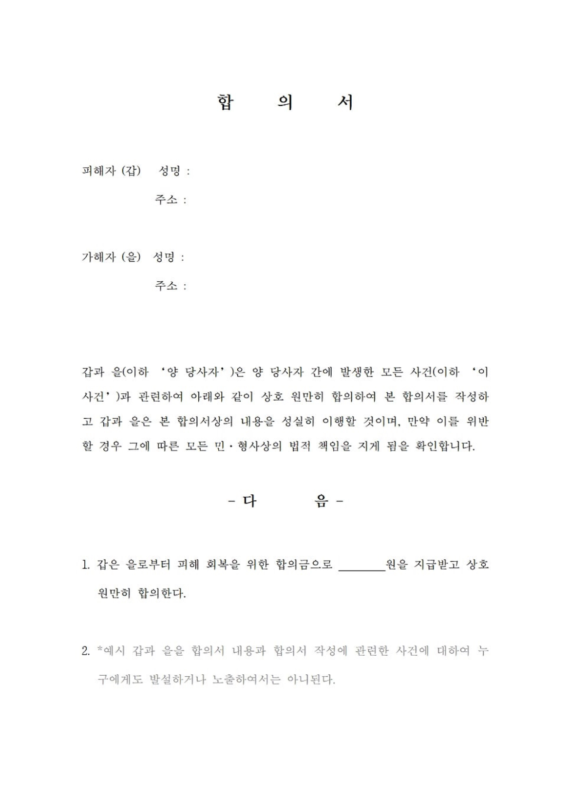 합의서 적고 가해자 피해자가 서명해야 되는데?