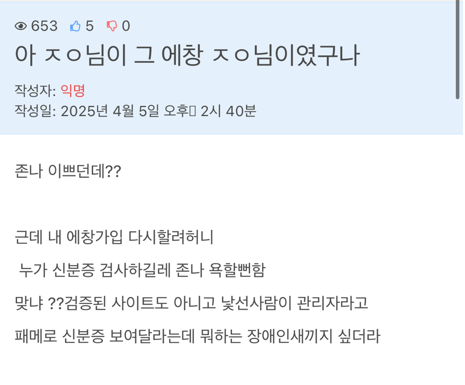 지가 했던 행실 생각못하고 꼴에 ㅋㅋ
