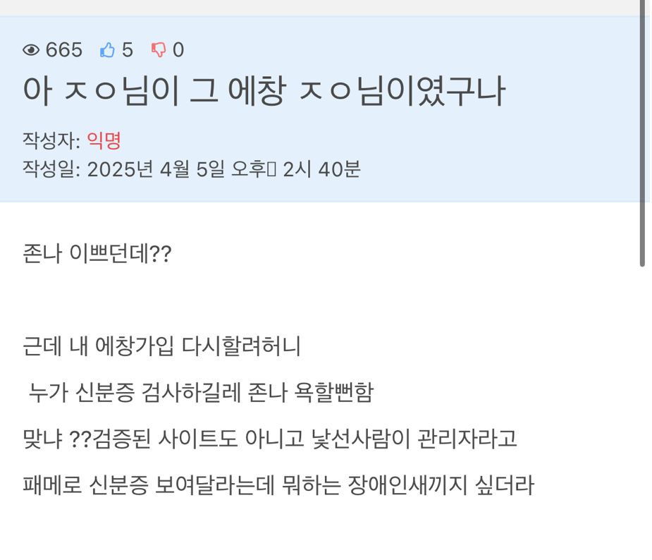 개거품 물고 댓글 주작 한다고 고소한다고 허버버 거릴거에요 글 내려주세요 안그럼 고소합니다