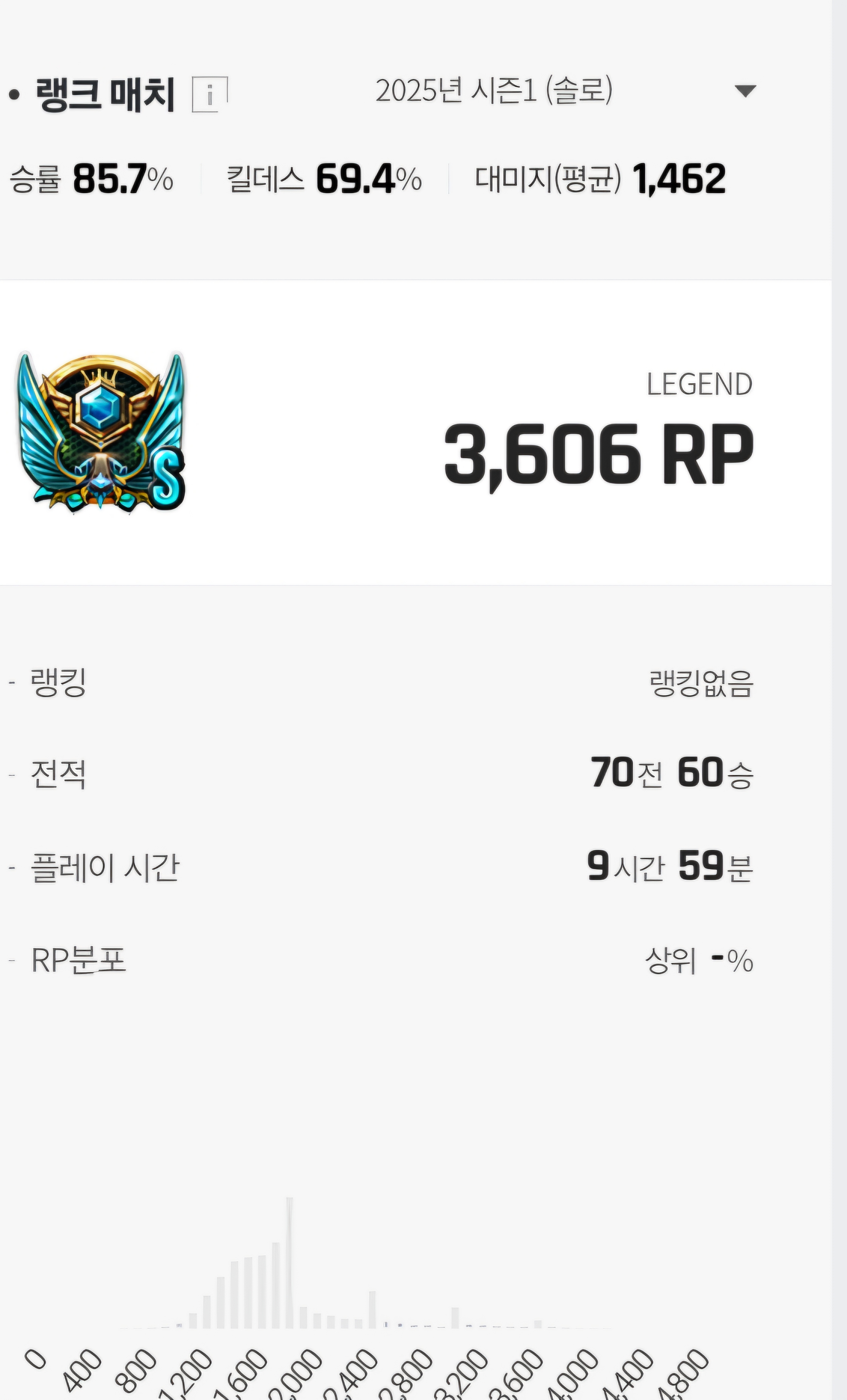 랭크전 기록이 거의 승90 킬뎃 70 레전드면