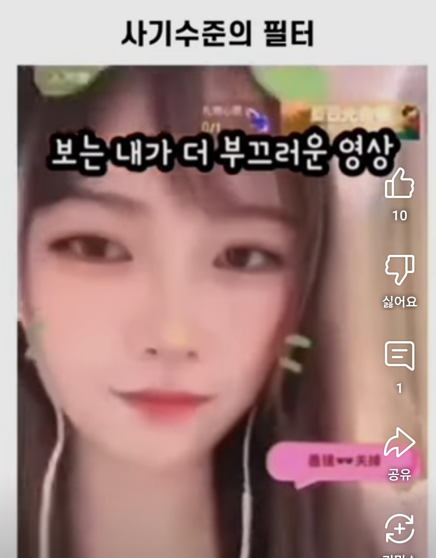 어제 보니까 득득이 AI보정 이슈 떳던데 보정필터 실시간으로 빼서 인증하라하면 아래같이 나올거라 100퍼 예상함