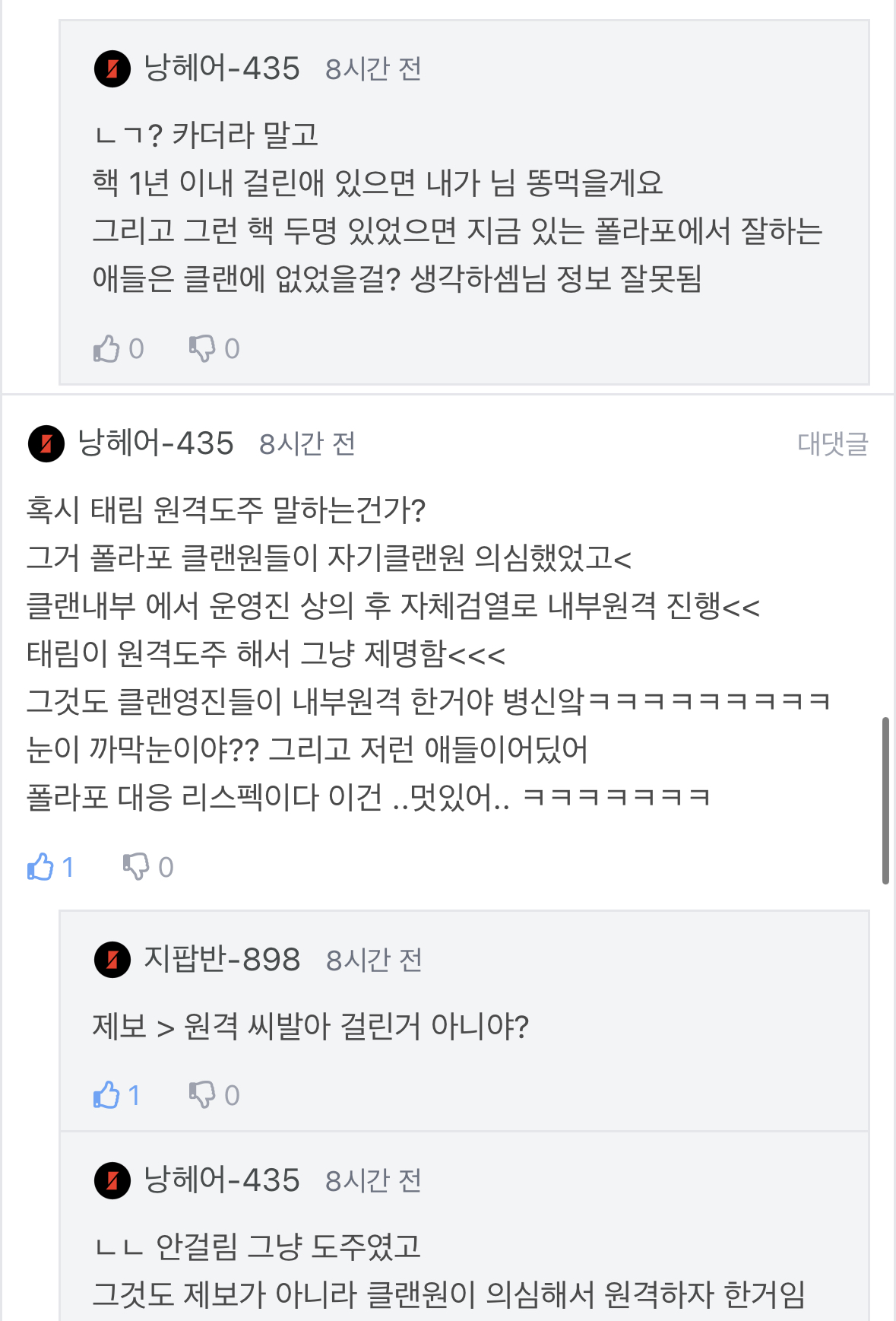 우와 폴라포 클랜원들 서플 엄청 본다