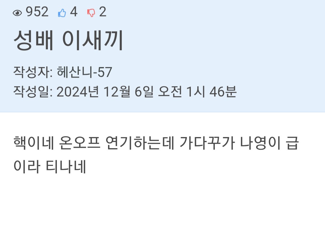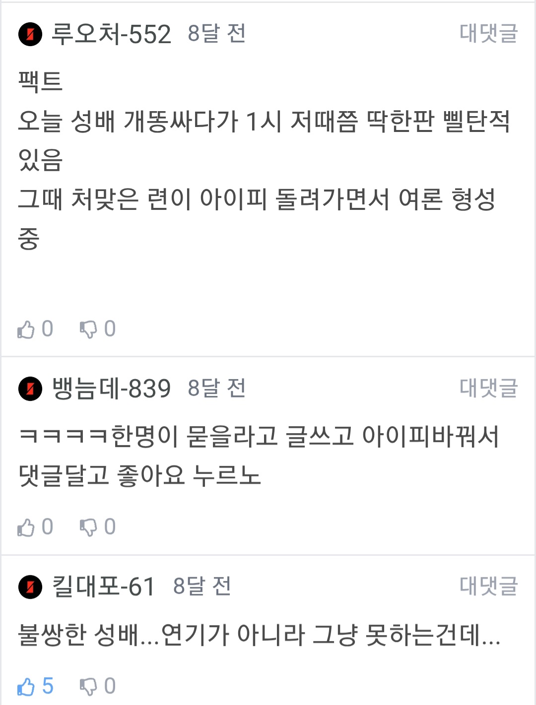 잘하는애들이나 고이는거지 니네같은 줫밥들은 고일수가 없잖아 ㅋㅋ