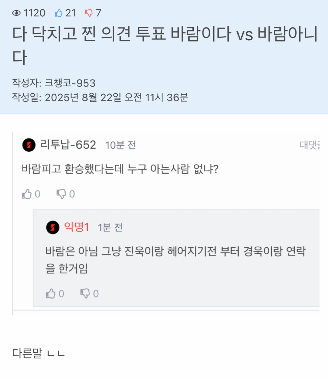 ㅋㅋㅋㅋㅋㅋㅋ 저기 말고도 한명 더 있는데 뒤에서 자기야 이러면서 너랑 하고 싶다 라는 이야기 맨날 쳐 들으면서 장난이였다고 하시는 분