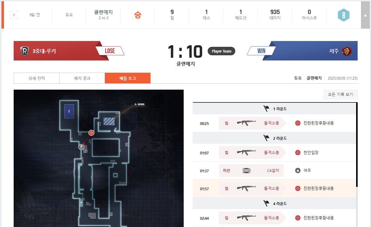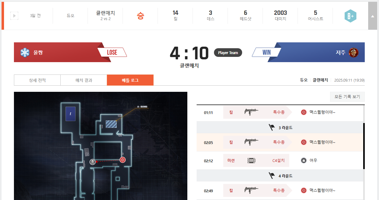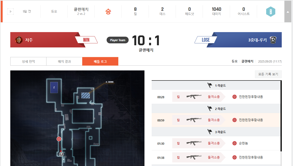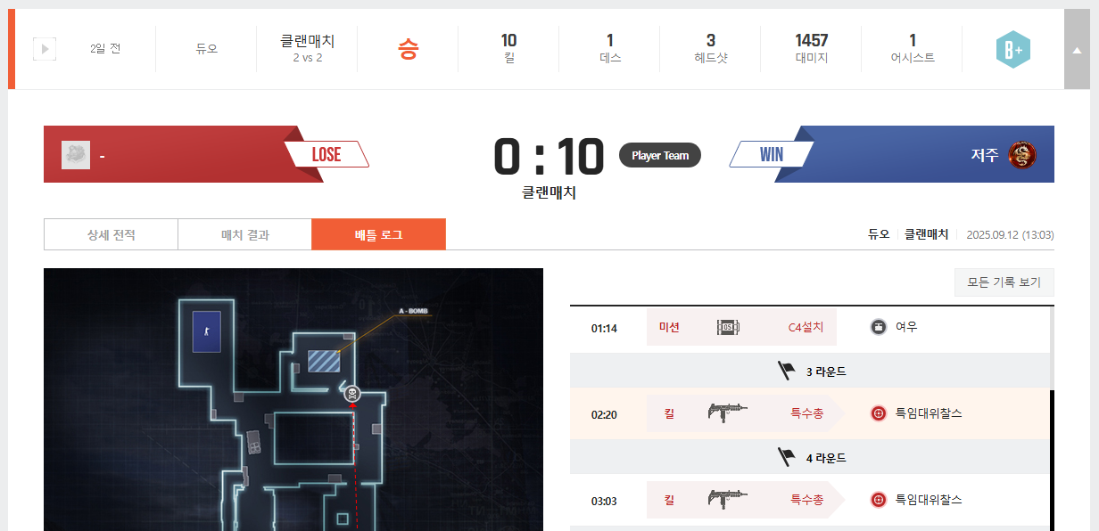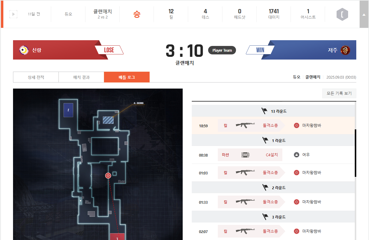 2025.09.03 ( 00:03 ) 2031118666 특임대위찰스 ( 매치기록 위닉 / 마차왕쌈바 ( 혈캐 )