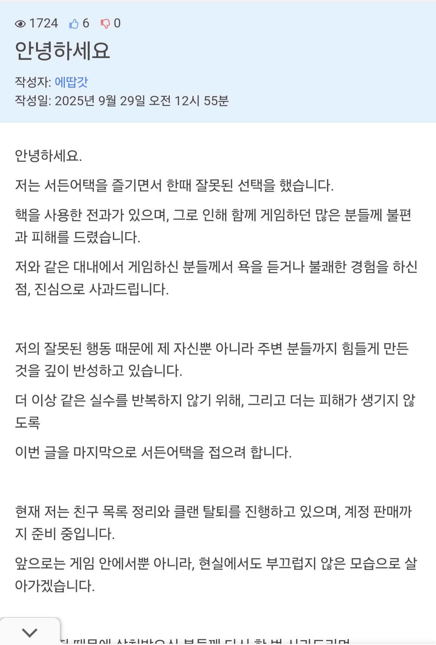고새 사과문썼다 지운거임???
