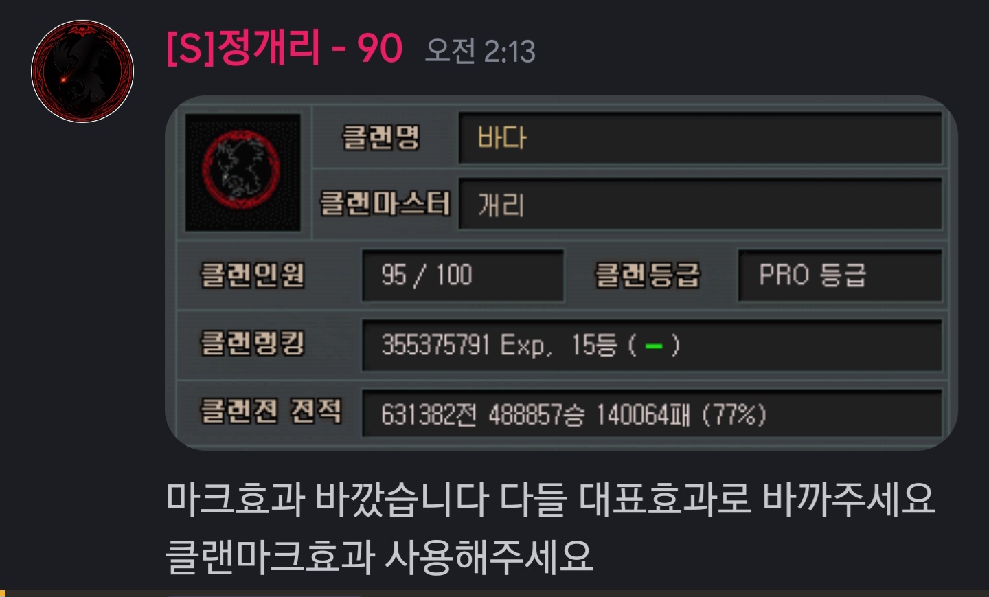 저 클랜 원래 클명 머냐 전적 개 높냐
