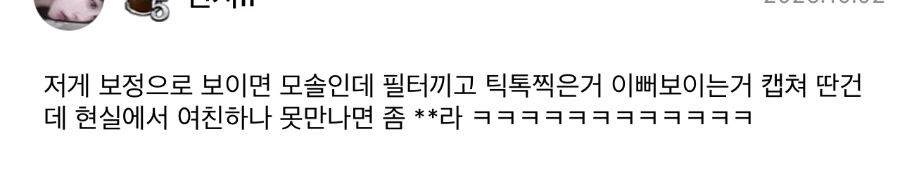 ㅋㅋㅋㅋㅋㅋㅋㅋㅋㅋㅋㅋㅋㅋㅋ저게 보정으로 보이면 모솔이라는데?
