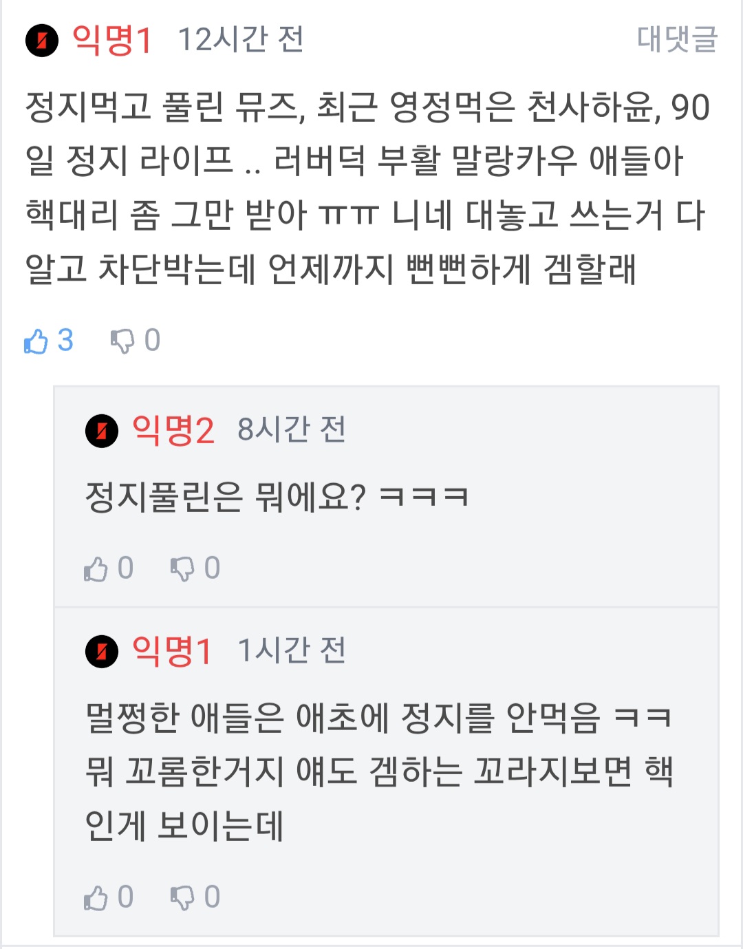 정지 먹었다가 풀린거면 무죄지 어떻게든 끼워맞추네