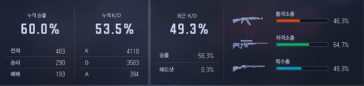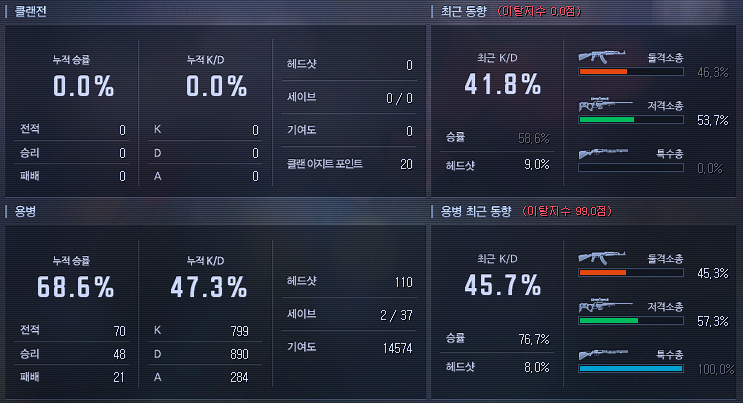비록 클전에선 킬뎃 41퍼 박긴 하지만 크카에서만큼은 잘합니다!