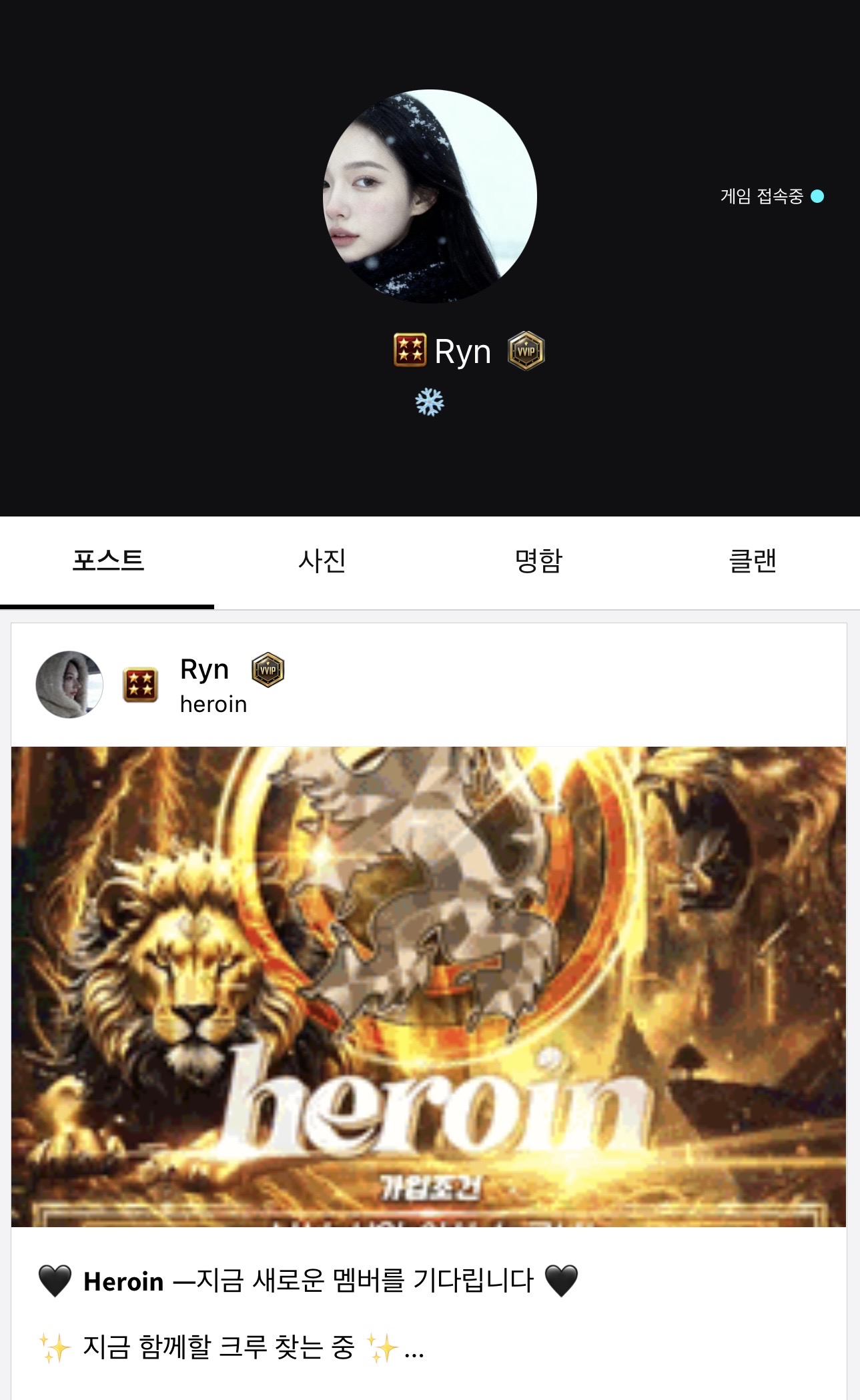 ๐Ÿ‘ธ์—ฌ์šด์˜์ง„๐Ÿšถโ€โ™€๏ธ ๋Œ€๋ฃฐ ํด๋žœ์› ๋ชจ์ง‘์ค‘ heroin