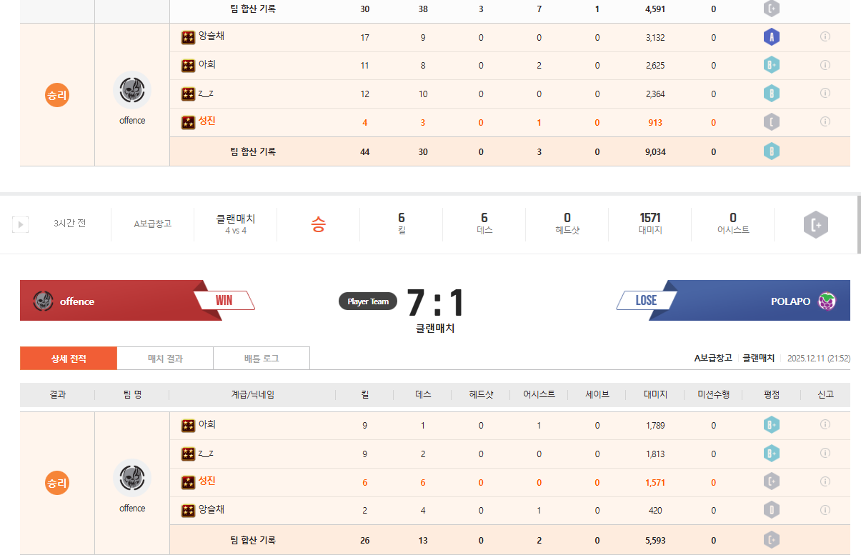 오펜스 핵으로 클랜 터짐 이미