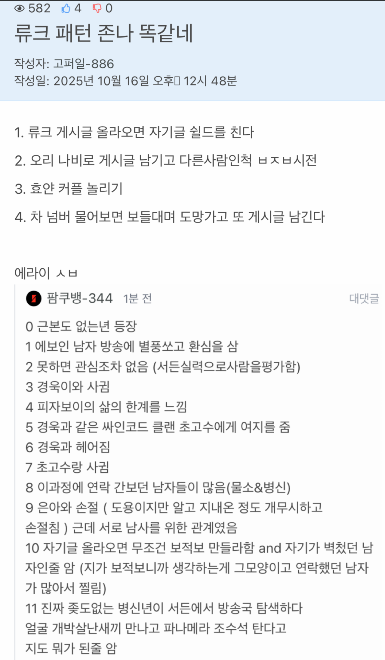 넌 내옆에 잇었으면 목졸라죽엿어 저리 ㄲㅈ