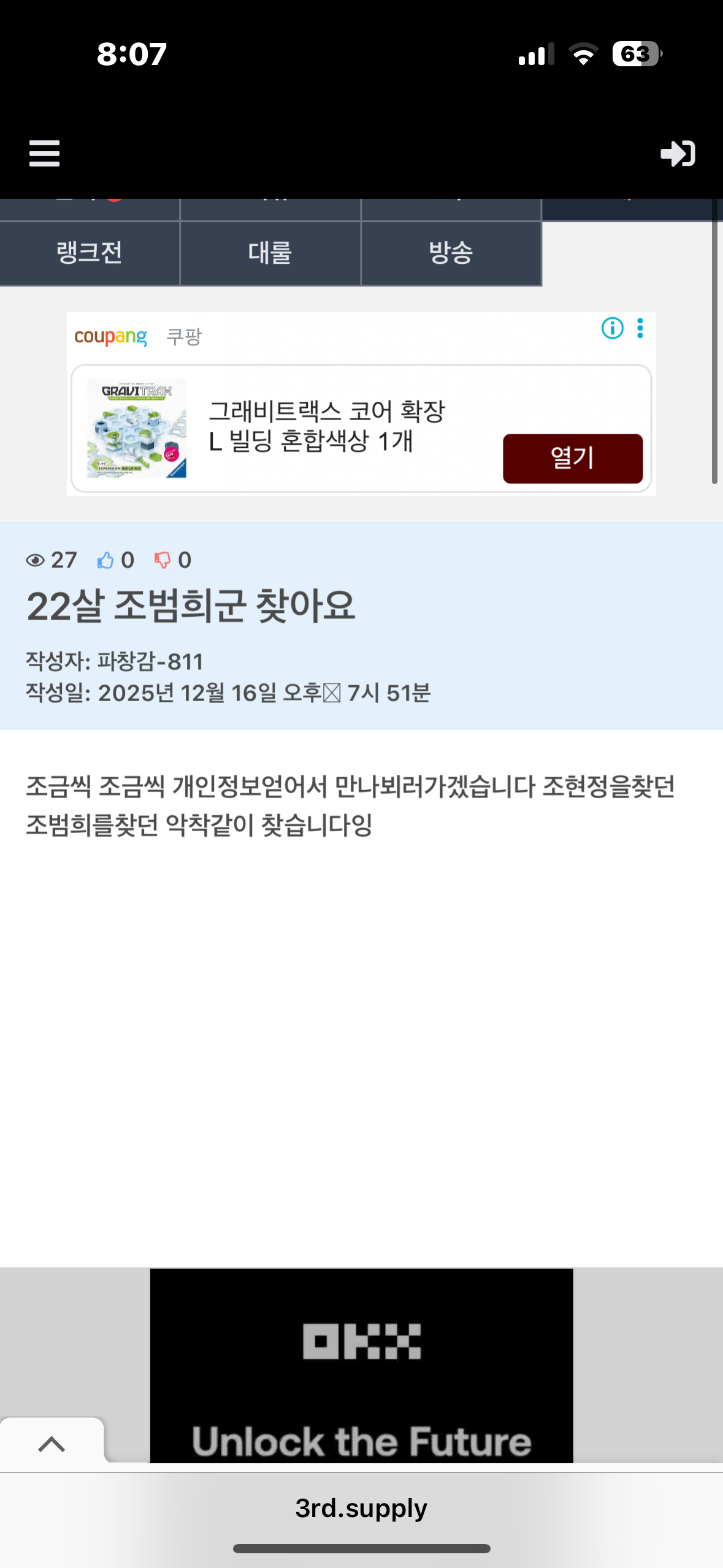 조금씩 조금씩 개인정보얻어서 만나뵈러가겠습니다 조현정을찾던 조범희를찾던 악착같이 찾습니다잉