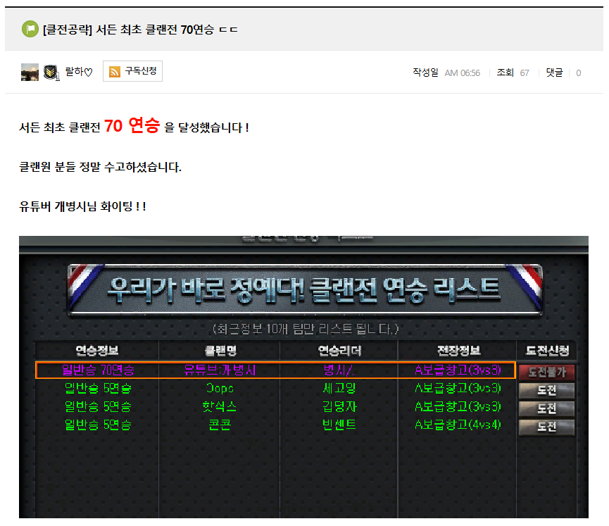 랜계로 올낙사 박고 70연승 했다고 자랑하는데