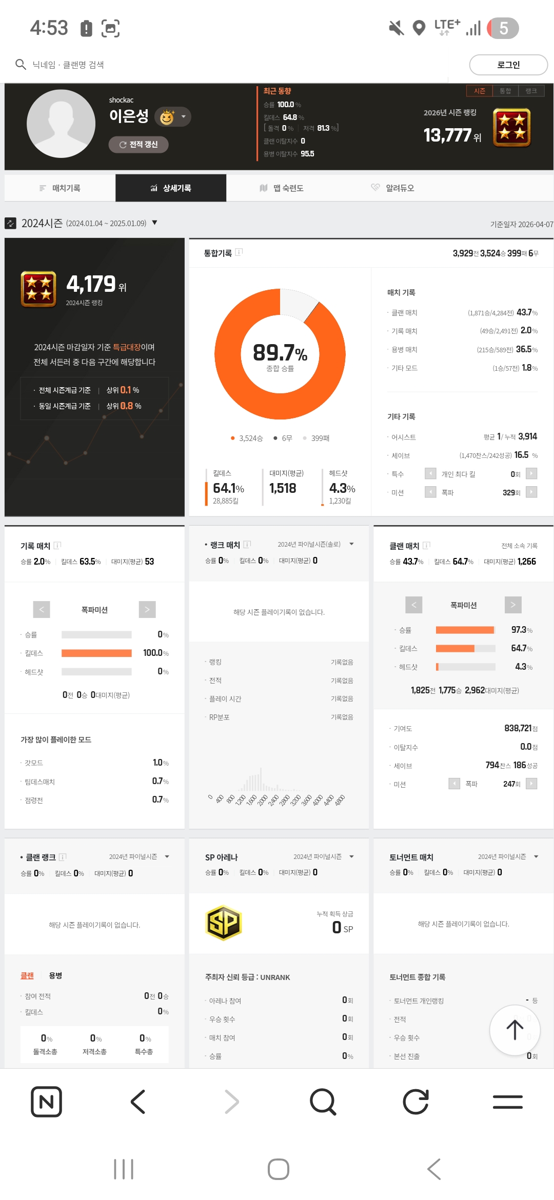 2019~2024까지 평균 승률 50따리임 ㅋㅋㅋㅋ 뭔 시발 다른애꺼냐 스킬아