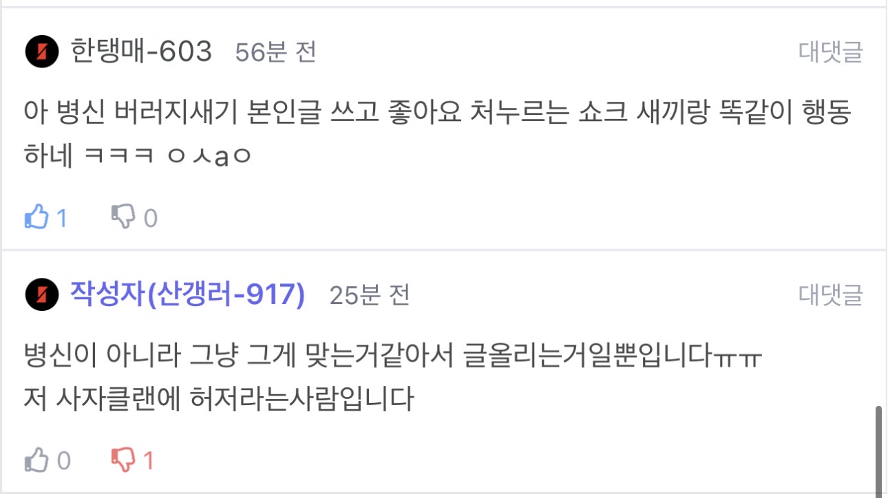 한탱매 핵걸린애중에 한명이나 도마위에 오른애중 한명같음