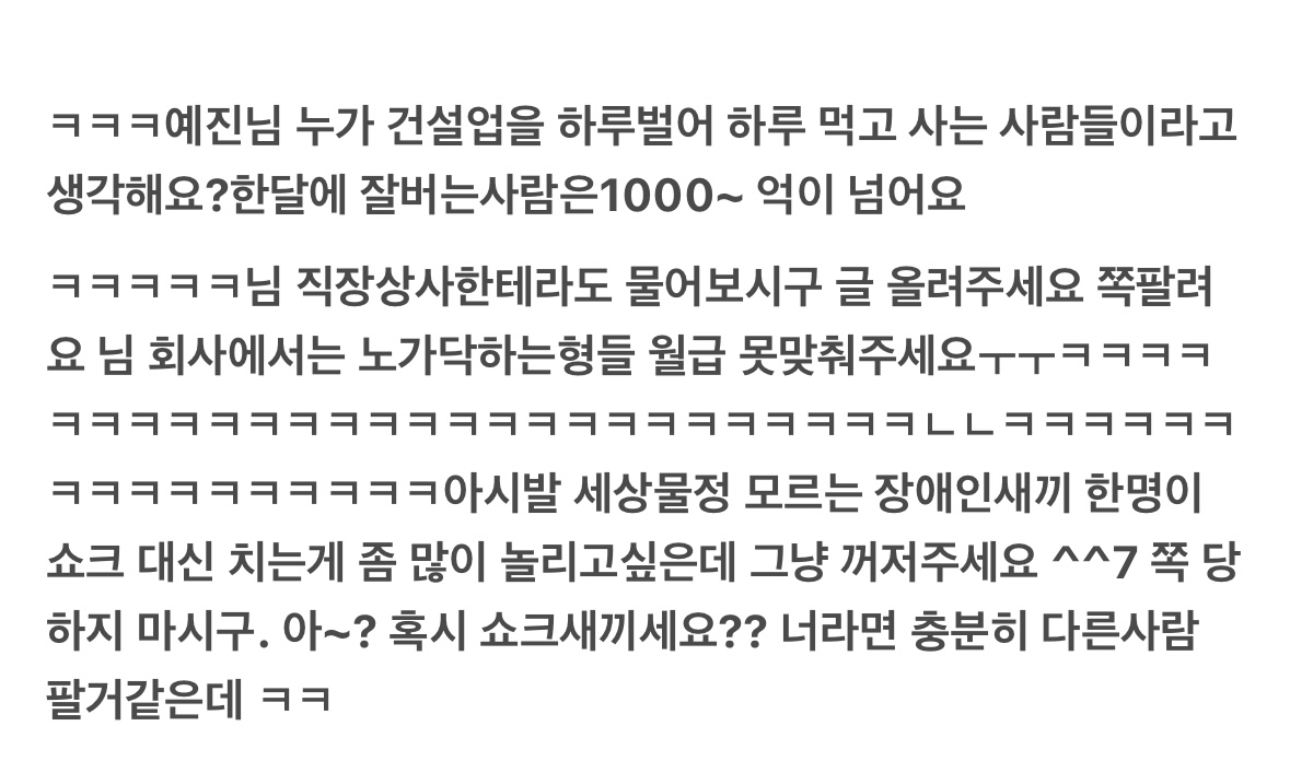 노가다로 천단위를 어떻게 벌어 개장애인아ㅋㅋ