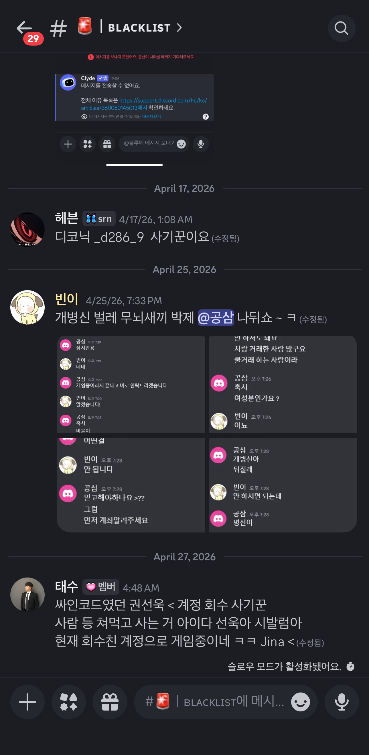 이거 보면 차단 풀던가 연락하시죠? 법적 조취 취하기 전에