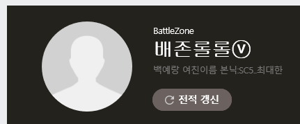본캐 : BattleZone에서 얼마전까지 전형민 사칭, 백예랑 닉네임을 사용, 현재닉네임 배존롤롤ⓥ