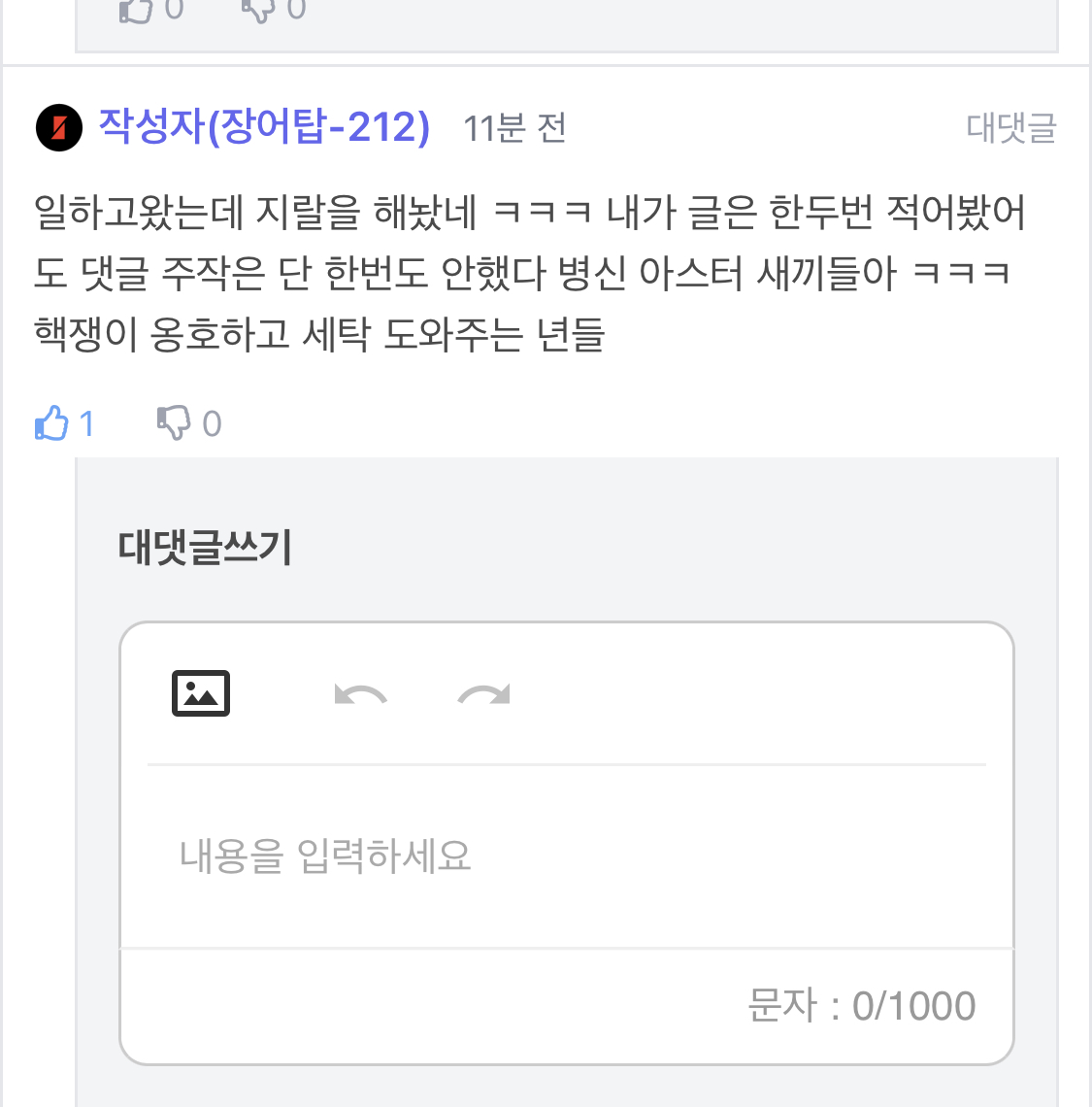아스터 애들은 다 개백수임? 지들 글엔 헐레벌떡 달려와서 다 같이 댓글다네