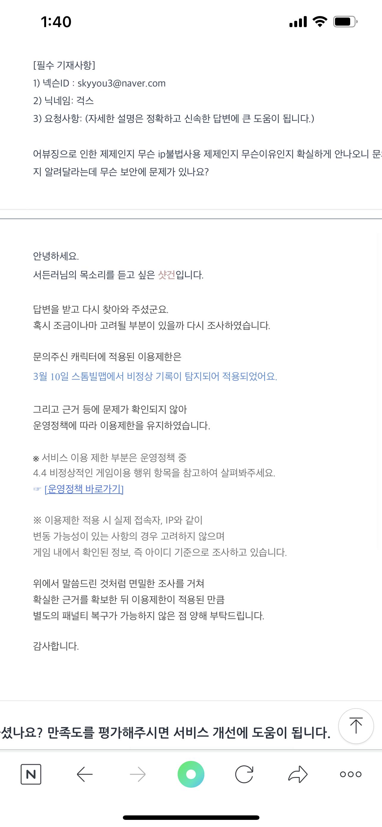 어뷰 4차는 1년 정지임 영구정지는 5차가 영구정지고