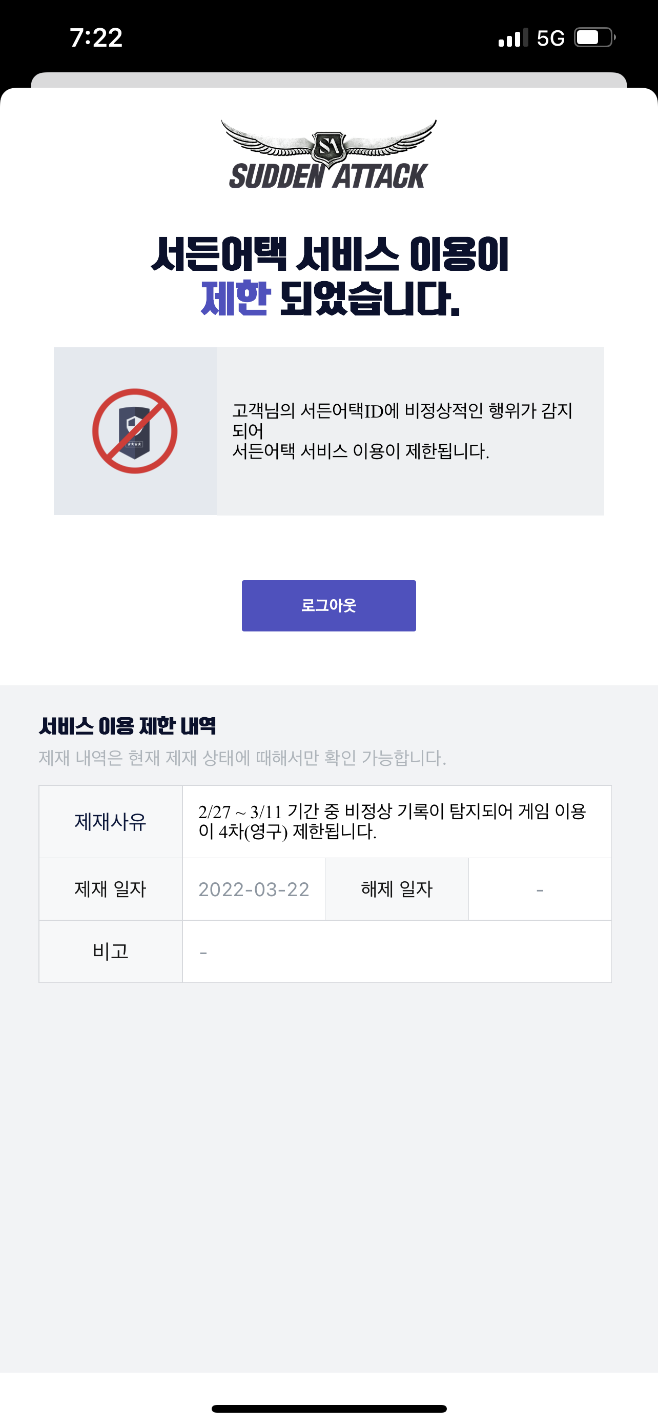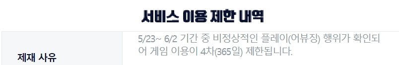 어뷰정지면 로그인 할때 4차이용제한어쩌고 뜨는데
