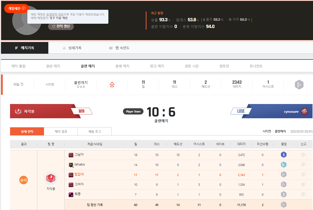 1년정지는 핵아닐걸?