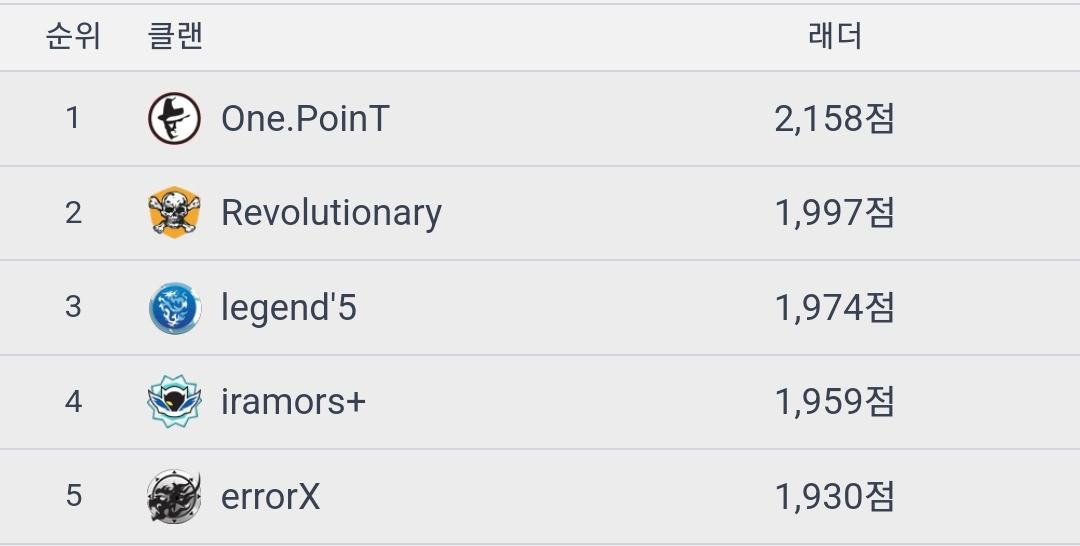 실력순서 나머진 쩌리