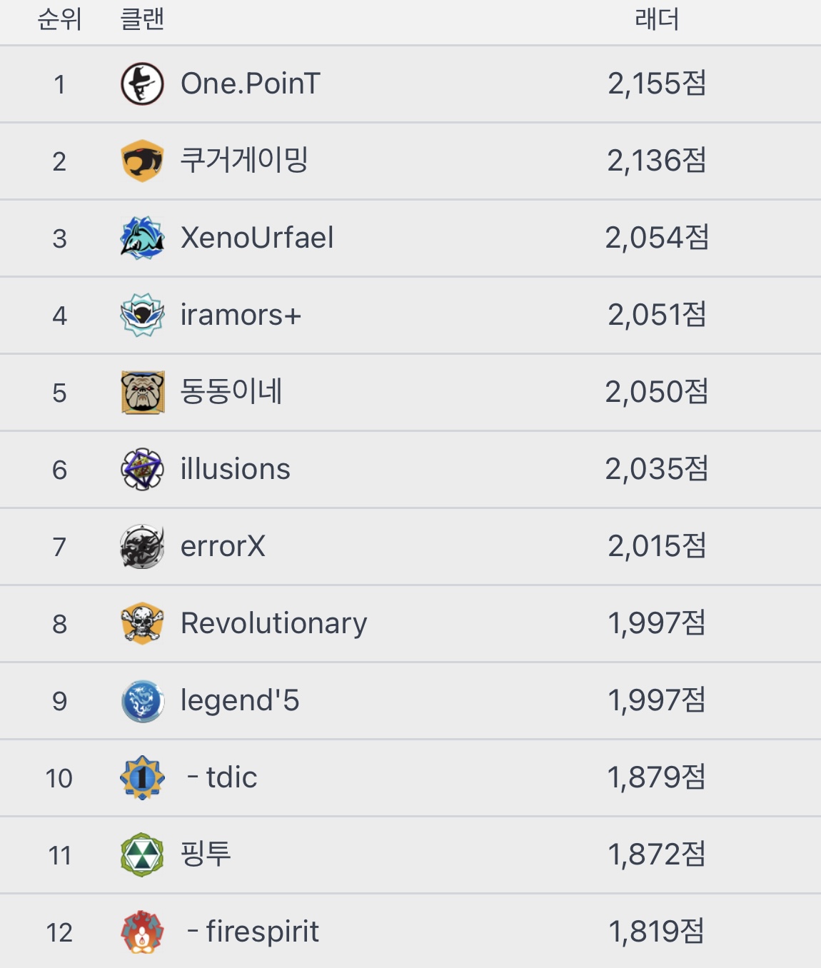 이중에 씹양사+이라모르스 쿠거 일루젼 익수 등등 상위클랜을 만나면 0.1초만에 빼는 클랜 세곳을 찾으시오