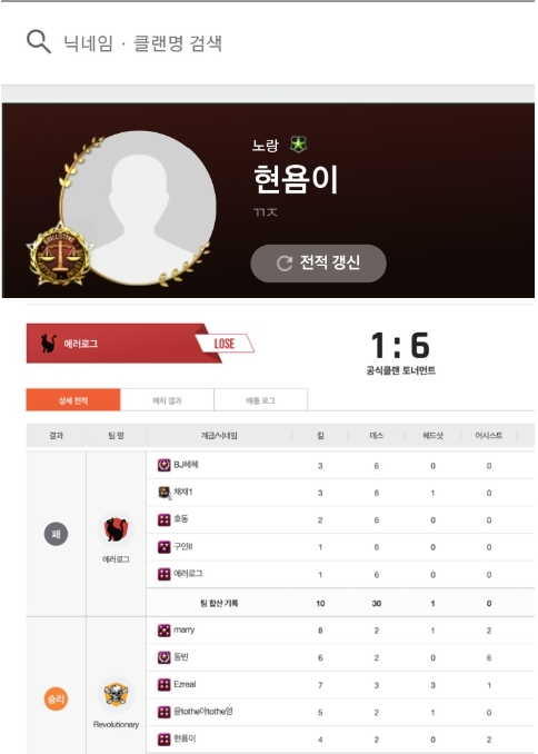 결승에서 에러로그 + 노랑 애들 만나니깐 현욤이 한마디에 우승을 그냥 줘버리네?