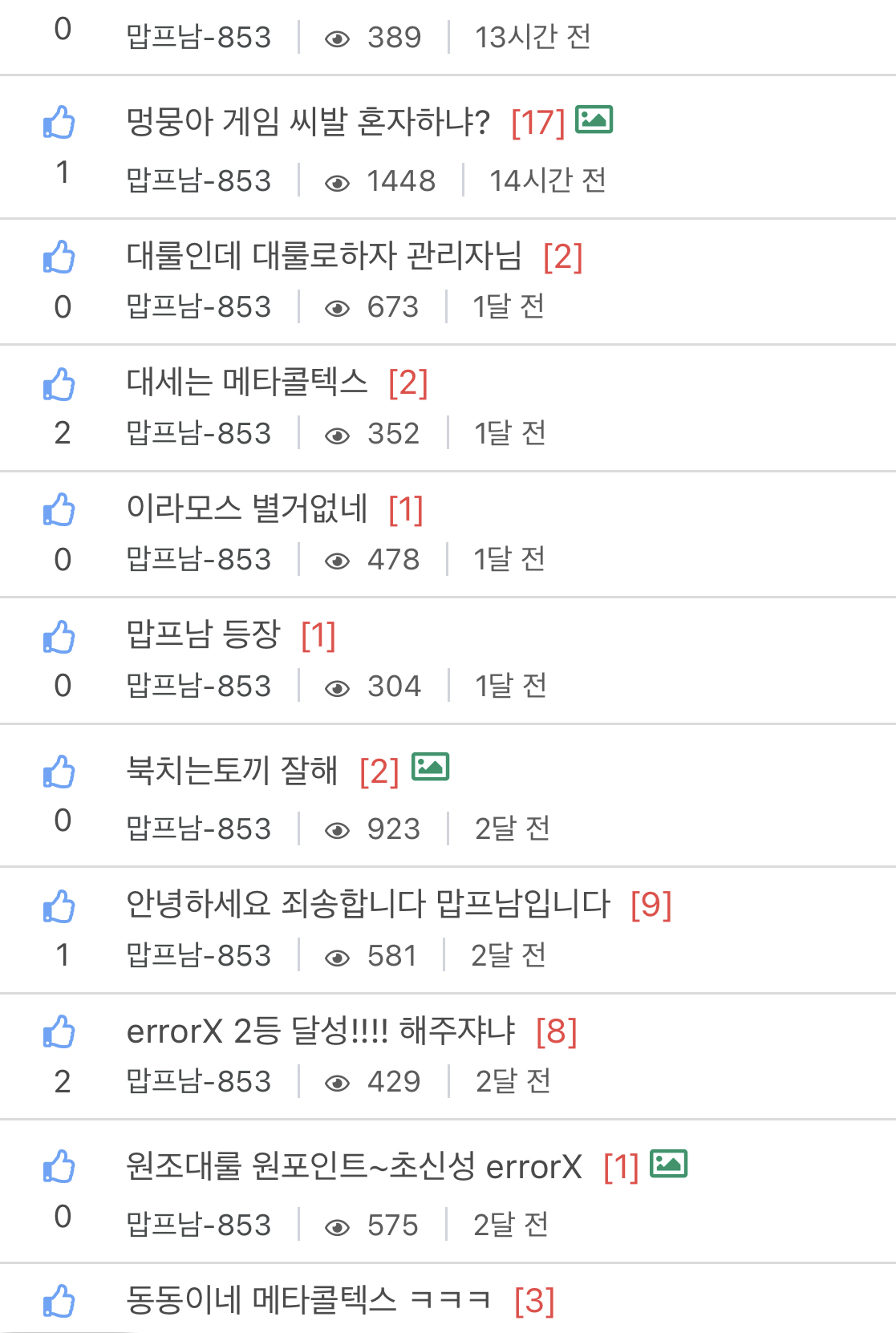 ㅋㅋㅋ 다 에러엑스가 쓰는글이라니깐 병신들 ㅋㅋㅋ