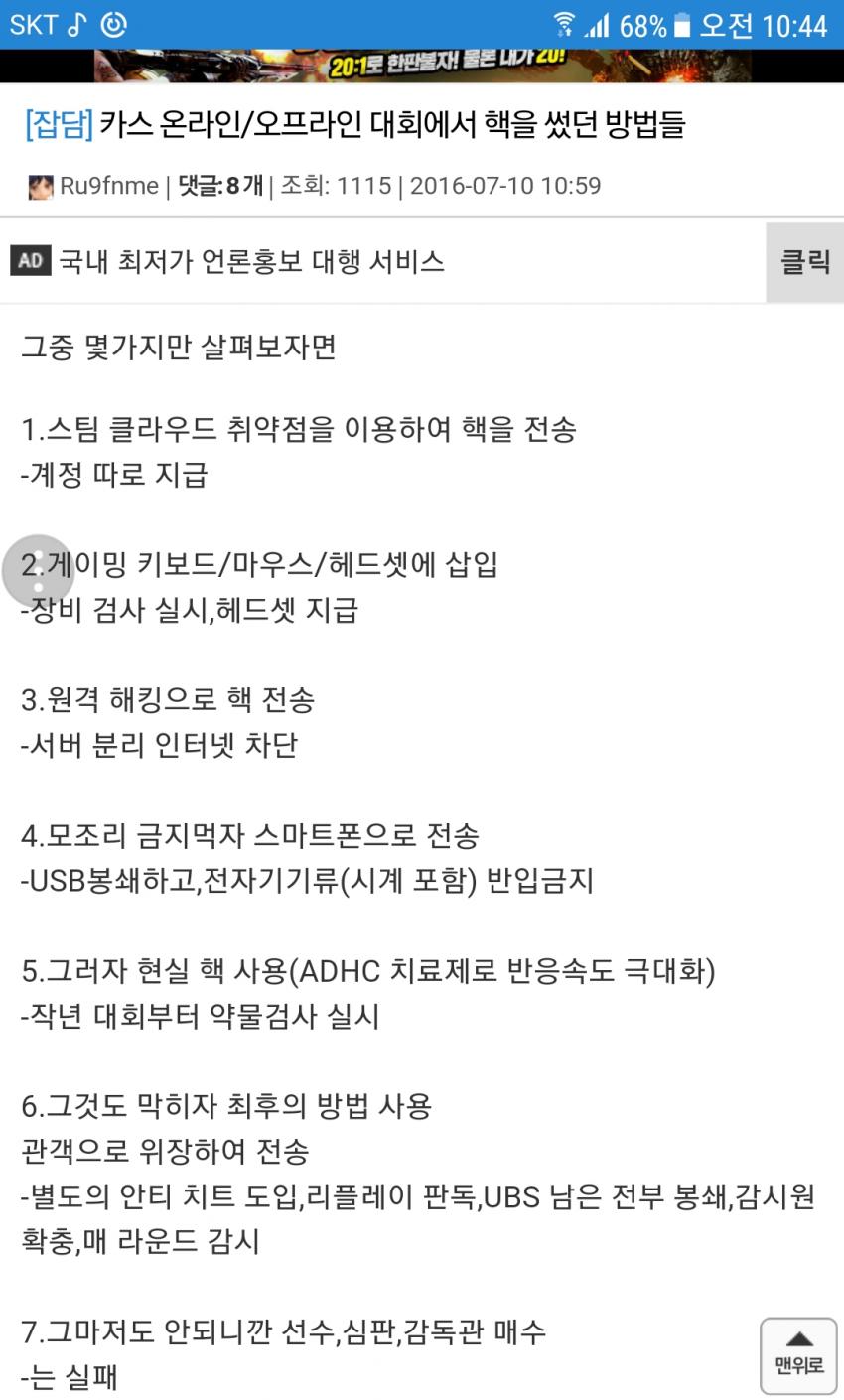 이미 십년도 전부터 카운터스트라이크 대회에선 니들이 상상도 못하는 방법으로 대회에서 핵이 적발되고 사용되어왔다.
