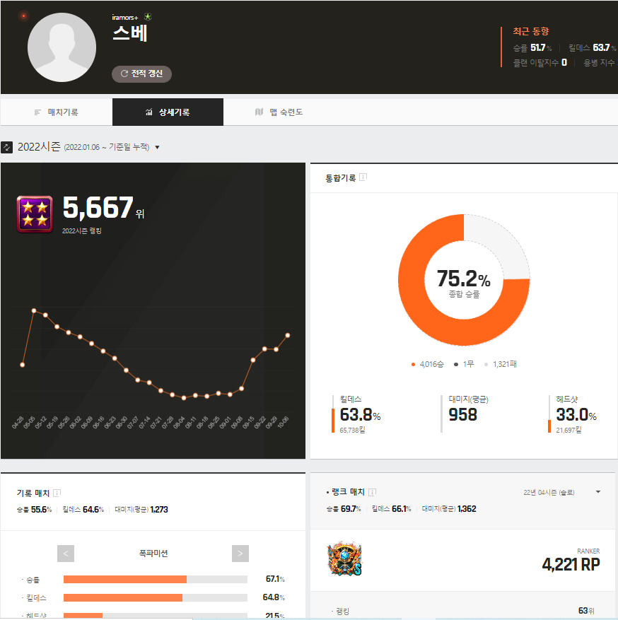 근데 승률이랑 킬뎃 말이 안되긴해