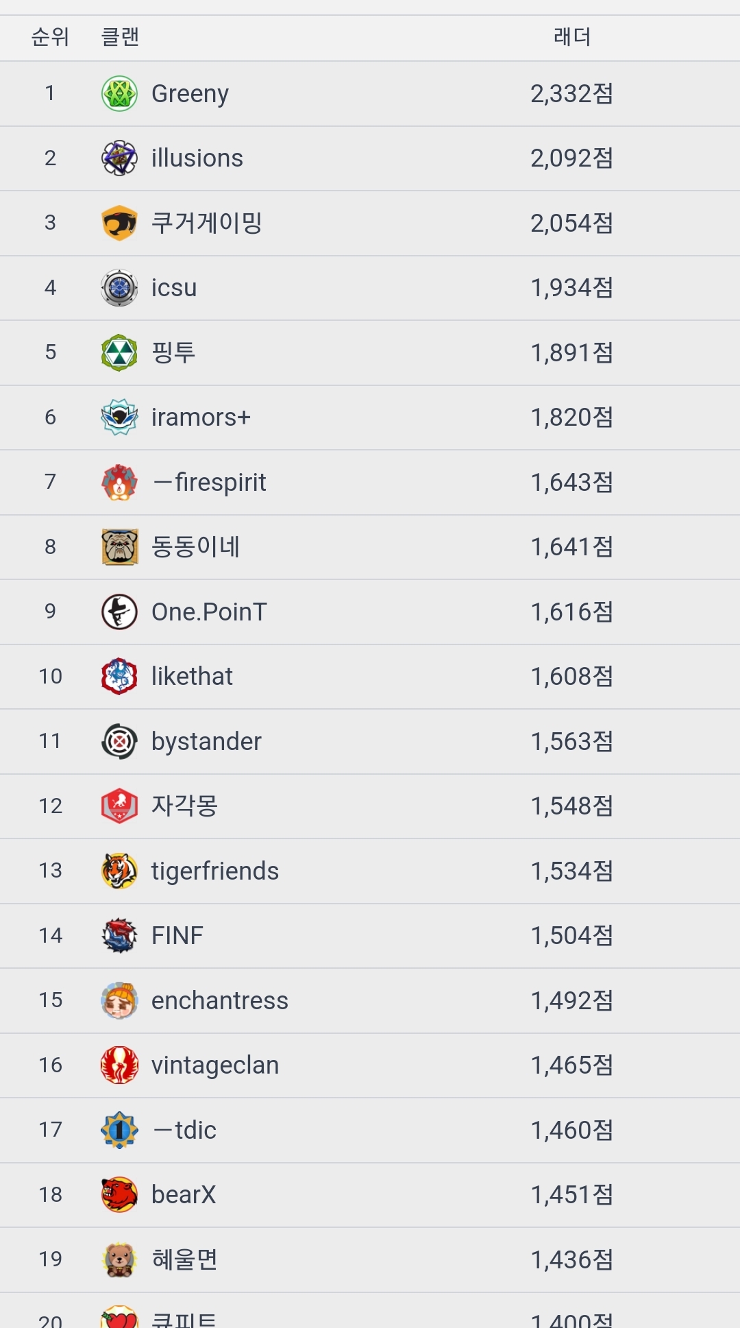 대체 클랜 점수가 무슨 의미가있냐 차라리 둘다 의미없지만 개인 랭킹을봐..