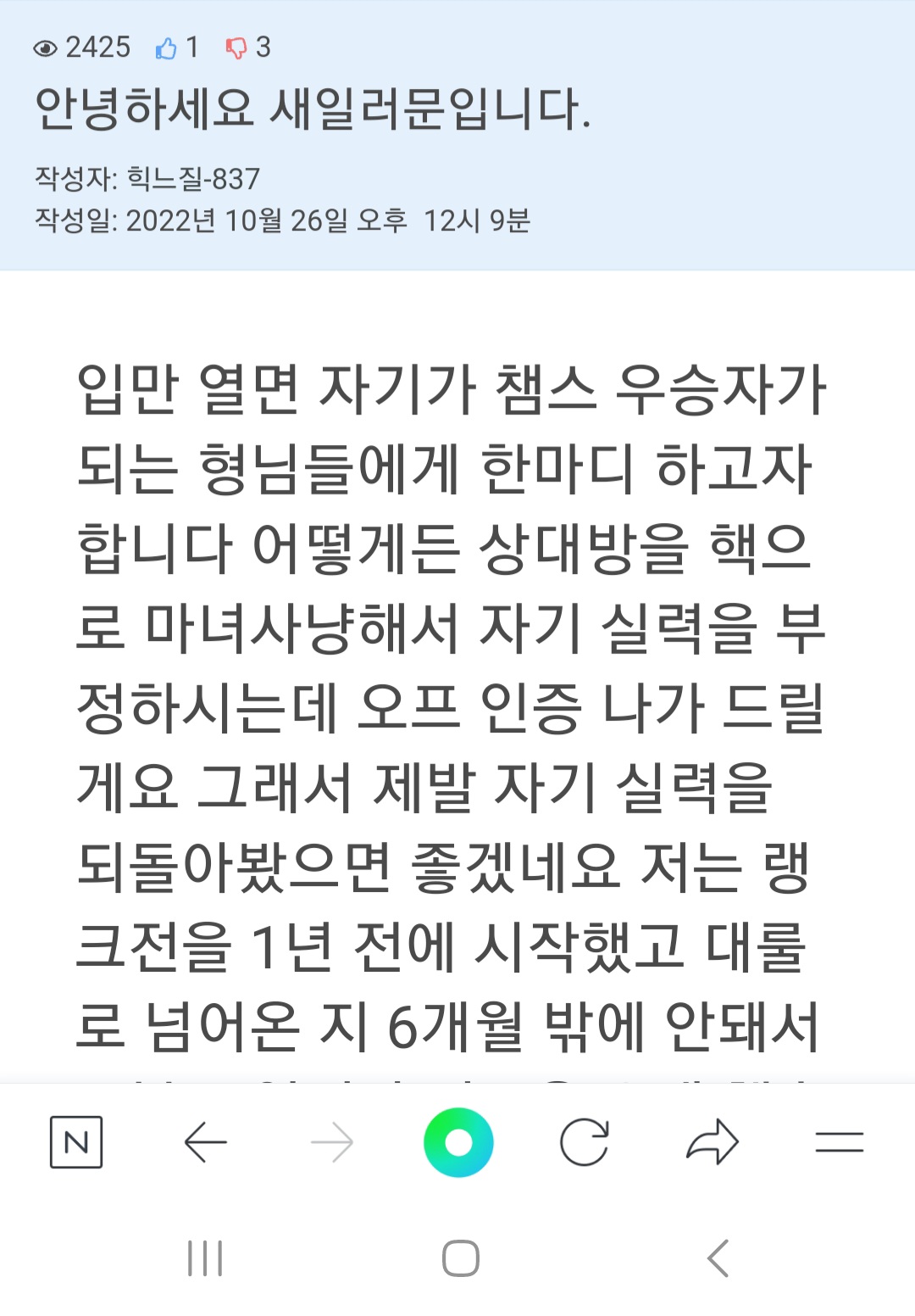 이제는 찐 실력이라는 말을 안믿어주니까 너무 억울하네요