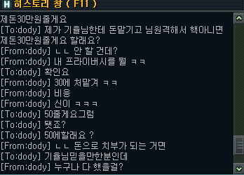 부계정아이디인 dody 로 게임하던도중