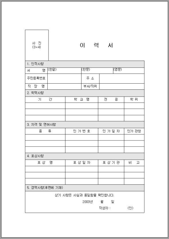 가져와도 꼭 2003년껄 가져오냐 최신꺼좀 가져와라 본인 취업할때 쓰는 양식가져온건가 틀니딲딱딱딲