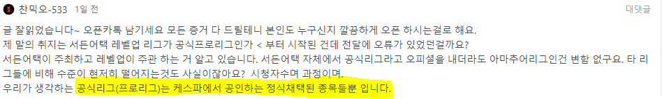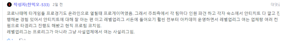 익명의 힘을 빌리는건 님이라는걸 제발 아세요.. 위 상황은 제가 이렇게 리그를 까고 까도 진짜 리그에 관심있고 좋아하면 팩트인거 아실거에요. 같은 업종에서 저도 나름 노력하고 있구요. 다만 작성자님.. 저희 언제 대화해요?