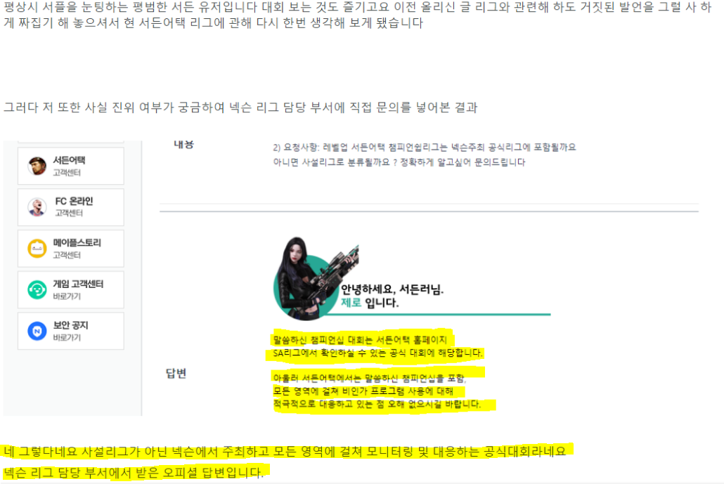 이야기하더라도 명확하게 서든어택 리그에 관한 허위사실 유포를 하셨고 그게 시발점으로 거짓된 발언 같아서 자세히 알아본 결과 증거자료 까지 첨부하신 거 안 보이시나요?