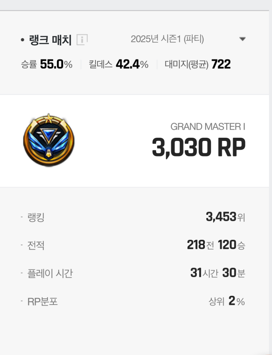 그마구간 킬뎃42퍼.. 218전이면 레전드가있을판수인데 킬뎃보니 그마도 버거워보이네.. 심지어 그 쉬운 파랭을..