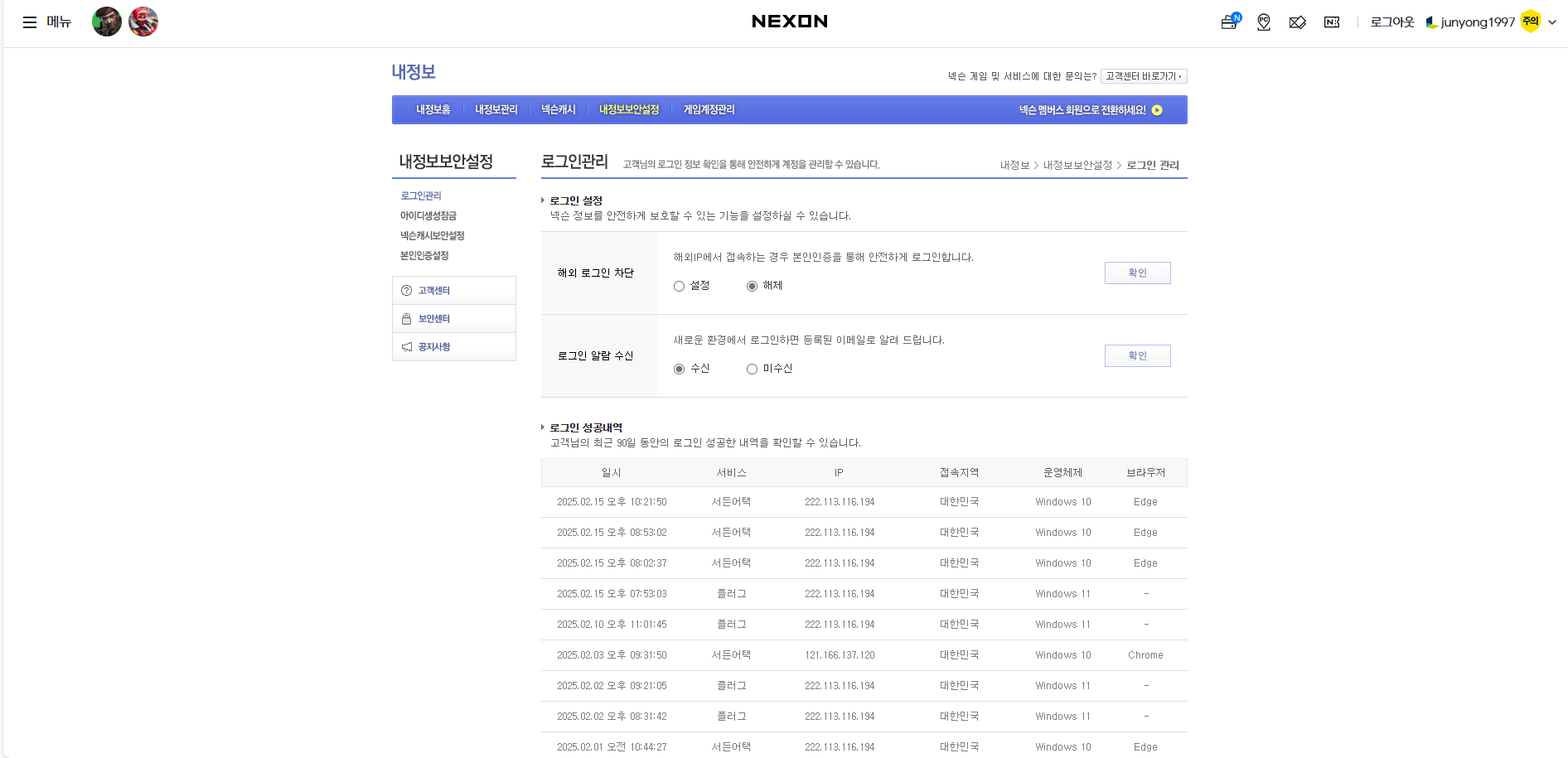 [붙임3] 2025년 2월 2일 로그인 IP (직접 플레이)