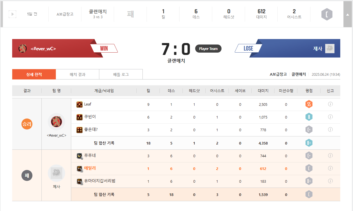 https://barracks.sa.nexon.com/1192121109/detail ㅋㅋ 이새@ 어뷰를 먹어도 기록이 병@이구나