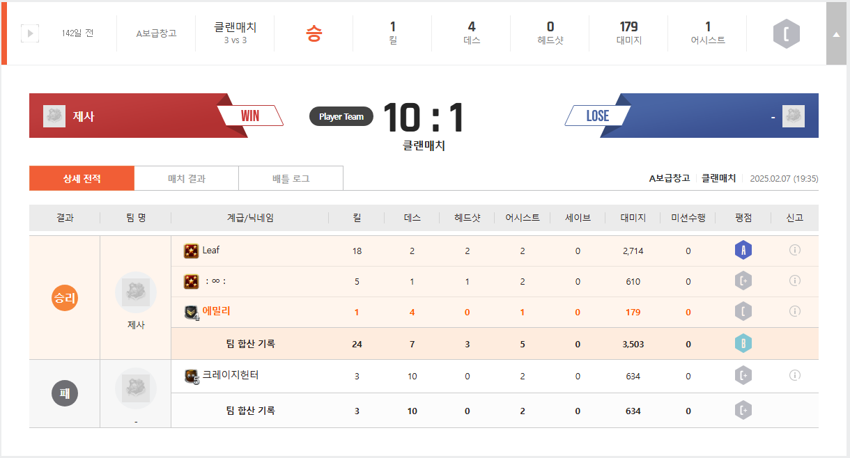 https://barracks.sa.nexon.com/clan/214235232/clanMatch  제사 클랜 병영