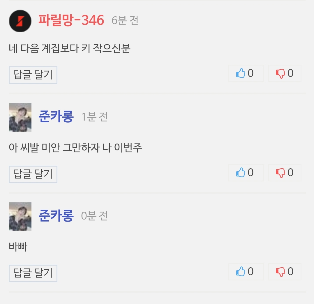 응 난쟁아 너나 지치지 븅신아 ㅋ
