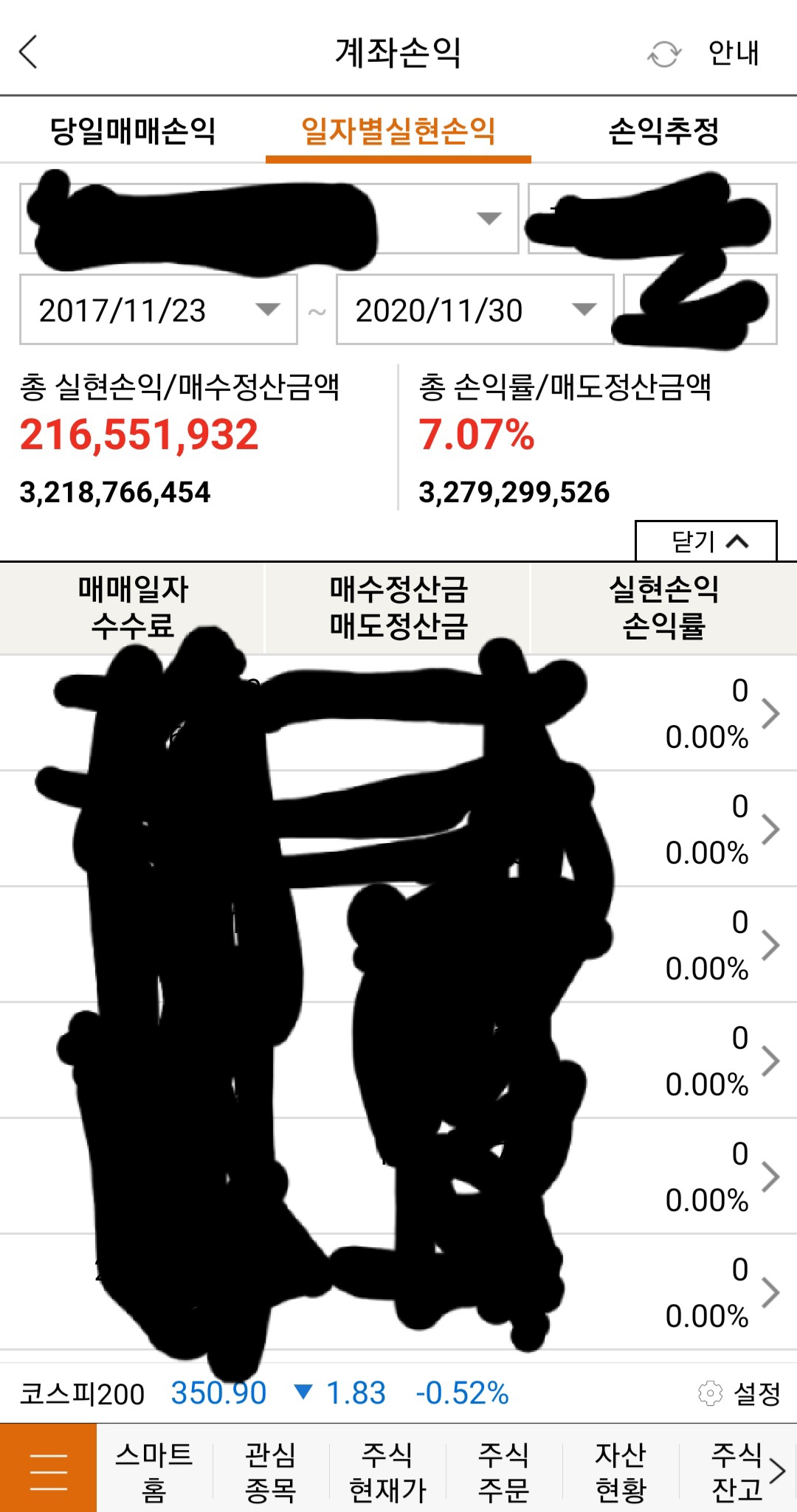 그리고 스샷으로 보여준 6개 주식이 절대로 손익률이 동시에 0이될수가없음
